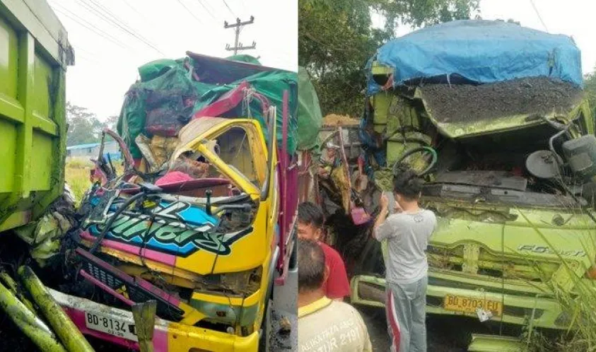 Sebelumnya truk dengan nomor polisi BD 8134 DH bermuatan material bahan bangunan, yang dikendarai Bg, dan penumpangnya Ro, beradu banteng dengan truk BD 8703 EU bermuatan batu bara yang dikendarai Al.