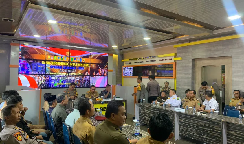 Alankanews.com, Bengkulu— Asisten 1 Pemerintah Kota Bengkulu, Drs. Eko Agusrianto, M.Si., menghadiri Rapat Koordinasi Lintas Sektoral Operasi Lilin Nala - 2023 dalam Rangka Pengamanan Natal 2023 dan Tahun Baru 2024 di Ruang Command Center Kepolisian Resor Kota (Polresta) Bengkulu, Senin (18/12).