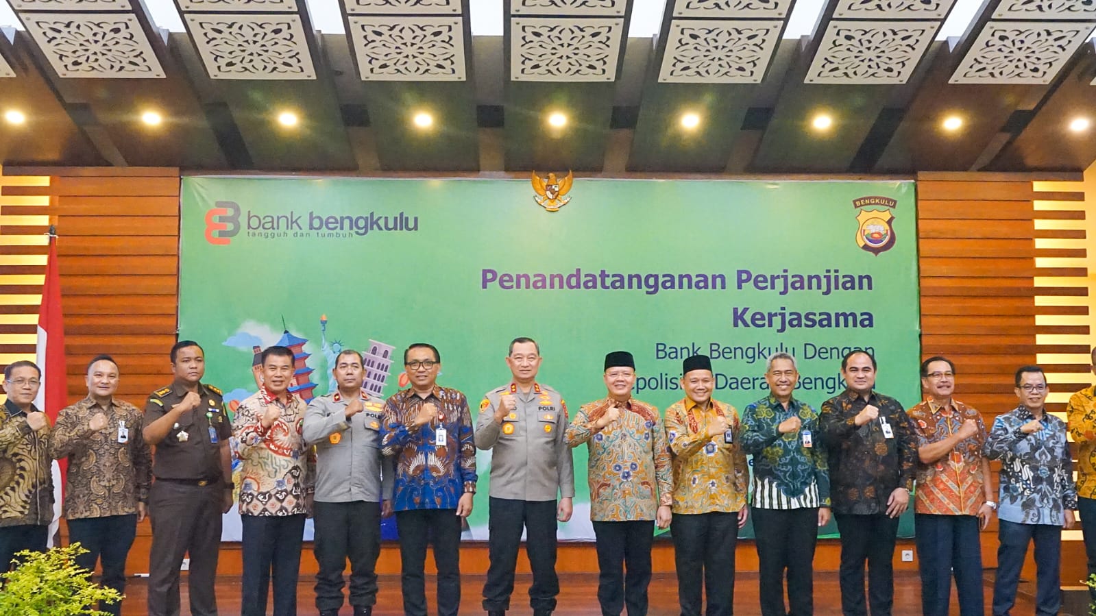 Perjanjian Kerja sama ini ditandatangani Direktur Utama Bank Bengkulu Beni Harjono dan Kapolda Bengkulu Irjen Pol Armed Wijaya yang disaksikan langsung Gubernur Bengkulu Rohidin Mersyah, yang dihadiri juga OJK Bengkulu, Bank Indonesia, BPK Bengkulu, Wakapolda Bengkulu, Perwakilan Kepala Pusat Keuangan POLRI, Kejati serta jajaran Komisaris dan Direksi Bank Bengkulu.