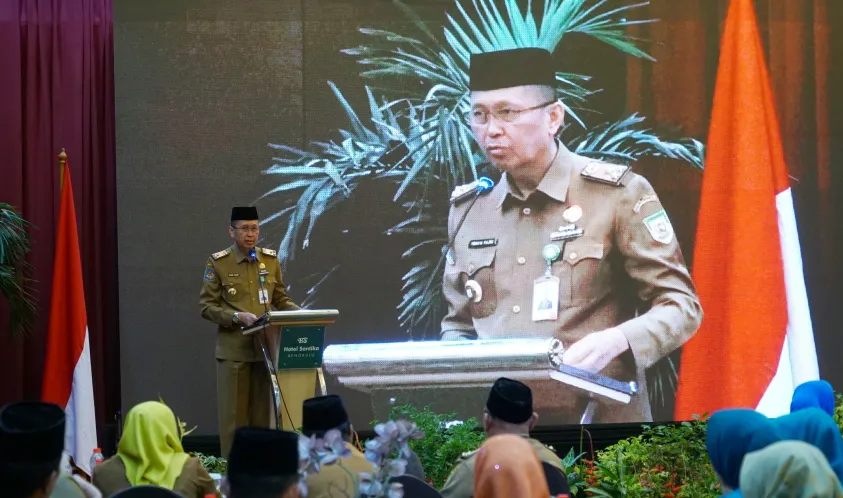 Sekda Provinsi Bengkulu Isnan Fajri hadir dan membuka Peringatan Hari Kesatuan Gerak (HKG) Pemberdayaan dan Kesejahtreraan Keluarga (PKK) ke-52 tingkat Provinsi Bengkulu, Selasa (11/06)/(Foto:Rilis Mc)