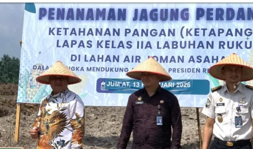 Alankanews.com, Asahan -- Bupati Asahan di Wakili oleh Wakil Bupati Asahan Rianto SH MAP menghadiri kegiatan penanaman jagung perdana dalam rangka program Ketahanan Pangan (Ketapang) yang dilaksanakan oleh Lembaga Pemasyarakatan (Lapas) Kelas IIA Labuhan Ruku di lahan Air Joman, Kabupaten Asahan.