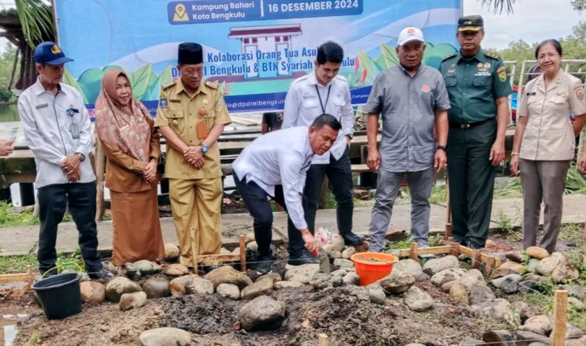 Alankanews.com,Bengkulu-- Kementerian Kependudukan dan Pembangunan Keluarga melalui Badan Kependudukan dan Keluarga Berencana (BKKBN) Bengkulu, Bank BTN Syariah Bengkulu bersama DPD Real Estate Indonesia (REI) Bengkulu melaksanakan peletakan batu pertama pembangunan jamban sehat di Kampung KB Kampung Sejahtera, Sumberjaya, Kecamatan Kampung Melayu, Kota Bengkulu, Senin (16/12/2024).