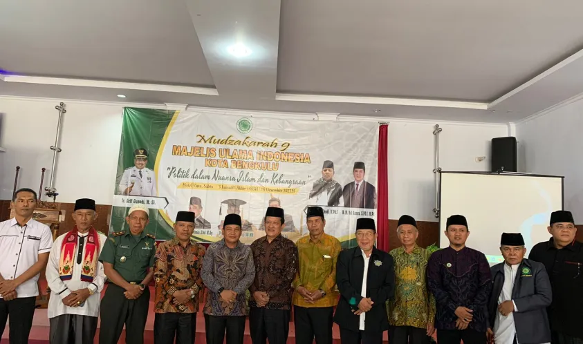 Alankanews.com, Bengkulu--Majelis Ulama Indonesia (MUI) Kota Bengkulu menggelar Mudzakarah 9 untuk mewujudkan Politik dalam Nuansa Islam dan Kebangsaan pada pemilu 2024 mendatang, di Hotel Vista Bengkulu, Sabtu (16/12)