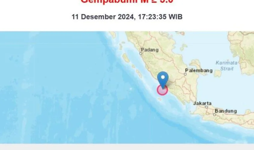 Alankanews.com, Bengkulu-- Badan Meteorologi, Klimatologi, dan Geofisika (BMKG) mencatat terjadinya gempa bumi dengan magnitudo 5,4 di wilayah Provinsi Bengkulu pada Rabu (11/12/2024).
