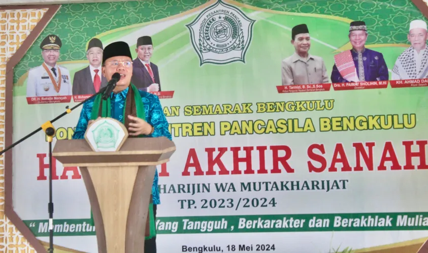 Hal tersebut disampaikan Gubernur Bengkulu Rohidin Mersyah usai hadir pada Haflah Akhir Sanah Tahun Pelajaran 2023/2024, di Aula Serbaguna Ponpes Pancasila Bengkulu, Sabtu (18/05).