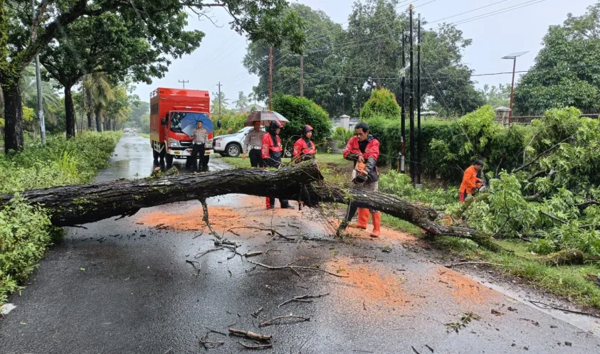 "Kami mengimbau kepada masyarakat ketika terjadi angin kencang dan hujan lebat agar menghindari kawasan atau ruas jalan yang terdapat pohon tinggi dan besar," ujar Riduan.
