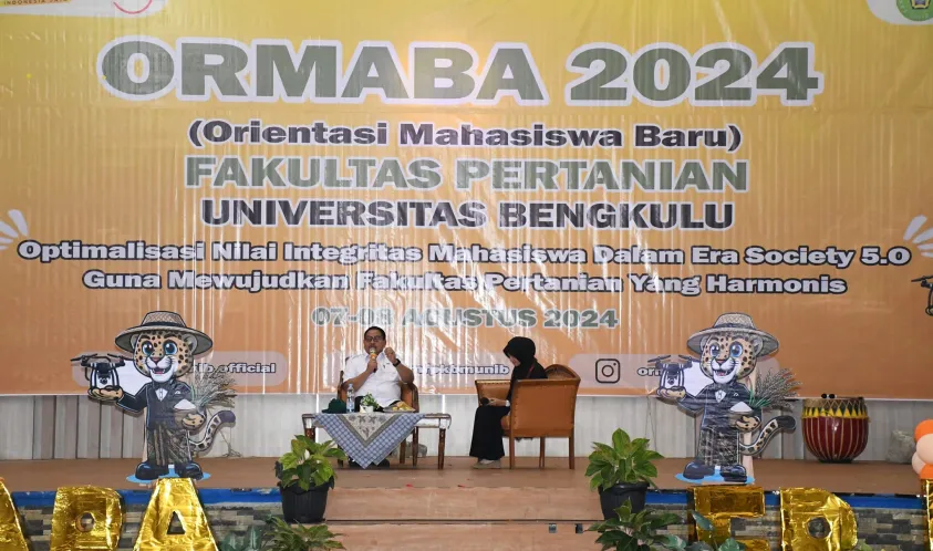 Dalam kesempatan tersebut, Arif yang hadir didampingi Asisten I I Made Wardana dan Kepala Bappeda Medi Febriansyah memberikan motivasi kepada ratusan mahasiswa baru fakultas pertanian Unib