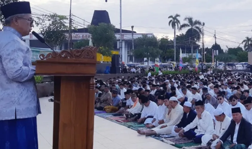 ‘’Hari Raya Idul Fitri 1445 Hijriah merupakan sebuah kemenangan.Karena umat Islam telah sukses dalam menjalani Bulan Suci Ramadan dengan baik.Selamat Idul Ffitri 1445 H,’’ ucap Kakanwil dalam laporannya sebagai Ketua Peringatan Hari Besar Islam (PHBI) pada shalat Idul Fitri di Masjid Raya Baitul Izzah, Rabu (10/04).