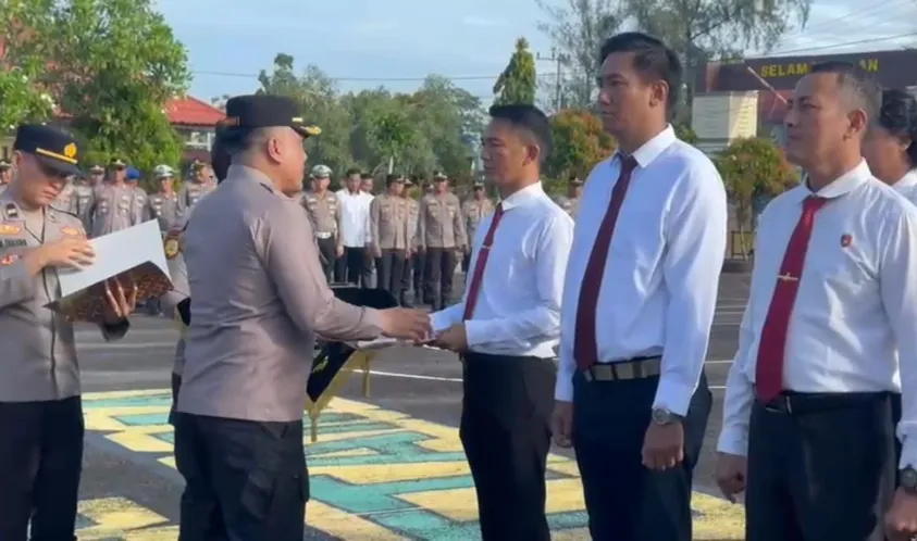 Alankanews.com,Kaur--Kapolres Kaur AKBP Yuriko Fernanda memberikan piagam penghargaan kepada 21 anggota Polres Kaur yang berhasil mengungkap kasus pembunuhan di Desa Karang Dapo, Kecamatan Kaur Selatan, Kabupaten Kaur. Penghargaan tersebut diserahkan pada Senin pagi (03/02/2025) setelah apel pagi di Lapangan Satya Haprabu.