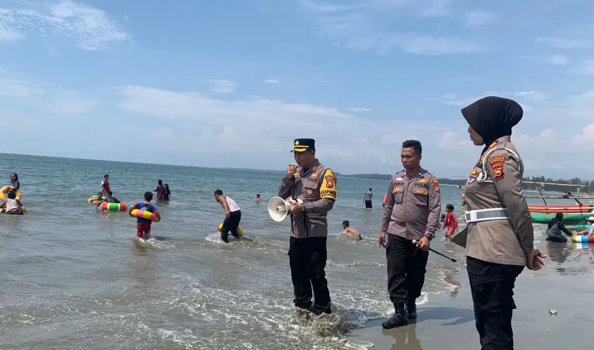 Alankanews.com, Bengkulu-- Kepala Kepolisian Resor Kota (Polresta) Bengkulu, AKBP Deddy Nata, S.I.K, turun langsung ke Pantai Zakat untuk menghimbau masyarakat dan wisatawan yang sedang mandi di Pantai Zakat saat liburan Natal 2023 dan Tahun Baru 2024 (Nataru), Selasa (26/12)/(Foto:Beta).