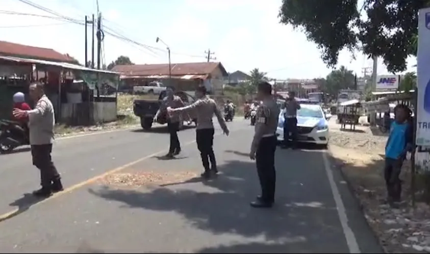 Beberapa warga berusaha mengevakuasi korban serta menertibkan arus kendaraan.