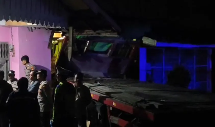 Sebuah truk tronton bernomor polisi BD 8454 CZ kehilangan kendali dan menabrak sebuah rumah, mengakibatkan seorang ibu hamil, Indah Dwi Sarah (33), meninggal dunia.