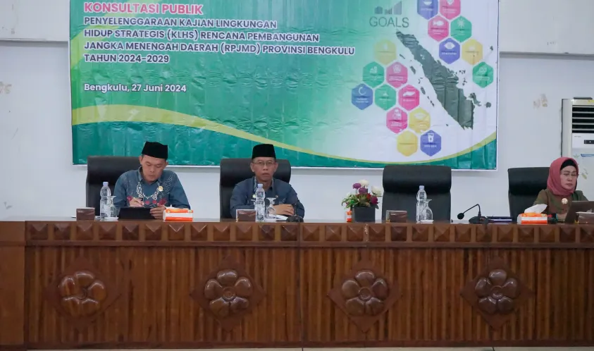 Alankanews.com,Bengkulu-- Pemerintah Provinsi Bengkulu melalui Dinas Lingkungan Hidup dan Kehutanan (DLHK) menggelar acara Konsultasi Publik yang membahas tentang Penyelenggaraan Kajian Lingkungan Hidup Strategis (KLHS) Rencana Pembangunan Jangka Menengah Daerah (RPJMD) Provinsi Bengkulu tahun 2024-2029, di Gedung Serba Guna Provinsi Bengkulu , Kamis (27/06).