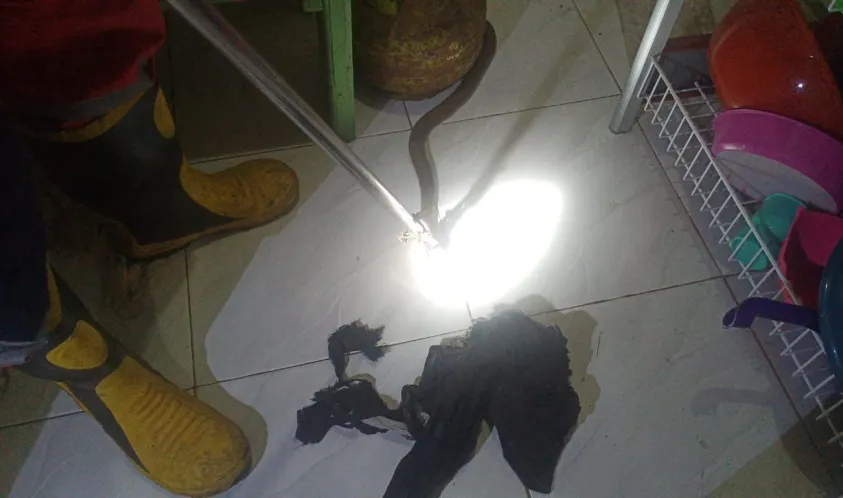 Alankanews.com,Bengkulu—Seekor ular kobra sepanjang 1,5 meter masuk kedalam kamar penghuni kosan yang berada di Gang Beringin 1, Kelurahan Padang Jati, Kota Bengkulu pada Senin, (05/02), hal tersebut menganggetkan penghuni kosan yang merupakan seorang mahasiswi yang bernama Nabela Tri Jualini