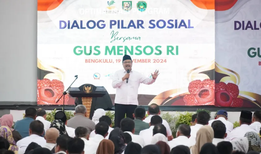 Alankanews.com,Kota Bengkulu-- Menteri Sosial Republik Indonesia Saifullah Yusuf atau yang lebih akrap disapa Gus Ipul melakukan kunjungan kerja ke Kota Bengkulu sekaligus berdialog bersama terkait Pilar-Pilar Sosial se-Provinsi Bengkulu, di Pendopo Merah Putih Pemerintah Kota Bengkulu, Selasa (19/11/24).
