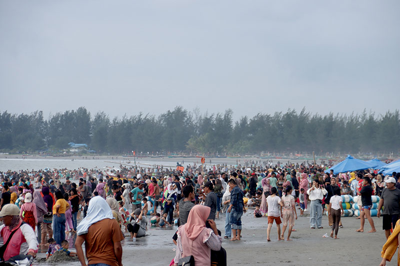 Pada momen lebaran tahun 2024, masyarakat telah mengindahkan imbauan dari tim yang bertugas agar tak mandi di pantai panjang, Kamis (16/04)/(Foto:Atina)