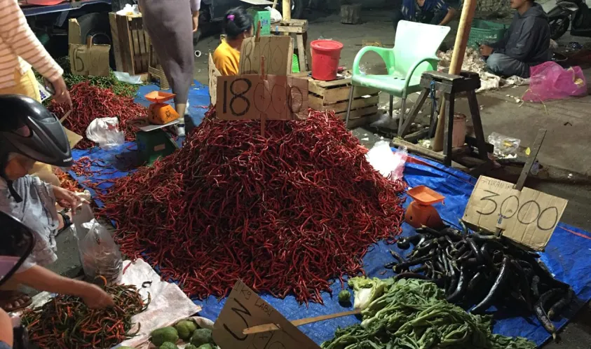 Sri mengaku bahwa dirinya hanya mengambil keuntungan kecil per kilogramnya dari penjualan cabai kepada konsumen.