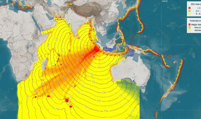 Tsunami yang ditimbulkan akibat gempa tersebut menyebabkan kerusakan parah tidak hanya di Sumatera, tetapi juga di negara-negara lain. Daryono mencatat bahwa tsunami yang dipicu oleh gempa M8,8-9,0 ini melanda Maladewa, Sri Lanka, dan Seychelles dengan kerusakan yang sangat besar. Gelombang tsunami juga dilaporkan mencapai Australia bagian utara, Teluk Benggala, dan Thailand meskipun dengan intensitas yang lebih kecil.