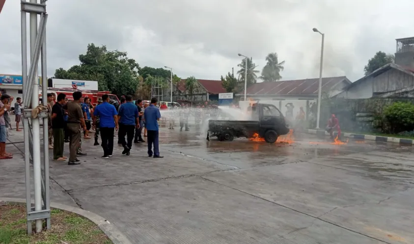 Kejadian tersebut bermula saat mobil Suzuki carry dengan nopol BD 9109 MZ sedang mengantre BBM, pada saat mengantri diduga timbul percikan api dari samping bodi pick up tersebut, hingga menyala ke bagian lantai bak mobil.