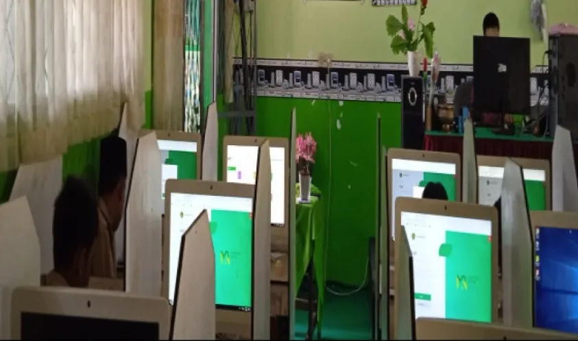 Untuk pelaksanaan siswa siswi yang mengerjakan AKMI ini menggunakan Laptop dan HP Android yang terkoneksi dengan WIFI Madrasah.