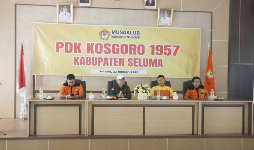 Alankanews.com,Seluma--Musyawarah Daerah Luar Biasa (Musdalub) PDK KOSGORO 1957 Kabupaten Seluma resmi dibuka oleh Asisten Pemerintahan dan Kesra, Hendarsyah, yang mewakili Bupati Seluma. Acara tersebut berlangsung di Aula BKD Seluma dan dihadiri oleh sejumlah pejabat penting, antara lain Forkopimda, Wakil Ketua PDK KOSGORO Provinsi Bengkulu, Sekretaris Dewan Kabupaten Seluma, serta pengurus dan anggota PDK KOSGORO Kabupaten Seluma, Kamis (23/01/2025).