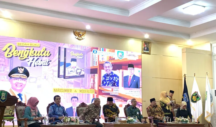 Alankanews.com,Bengkulu-- Pemerintah Provinsi (Pemprov) Bengkulu berkolaborasi dengan Kantor Perwakilan Bank Indonesia (BI) Bengkulu dan juga Dinas Perpustakaan dan Kearsipan (DPK) Provinsi Bengkulu menggelar bedah buku “Bengkulu Hebat” karangan Gubernur Bengkulu, Prof. Dr. drh. H. Rohidin Mersyah, MMA., di Balai Raya Semarak Bengkulu, Selasa (27/02).