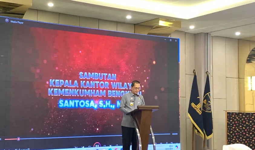 Kepala kanwil Kemenkumham Bengkulu, Santosa, S. H., M.M., dalam sambutannya menjelaskan indikasi geografis merupakan suatu tanda yang menunjukkan asal suatu barang atau produk karena faktor lingkungan geografis, hal tersebut termasuk dalam faktor alam, faktor manusia, atau kombinasi keduanya, yang membuat produk memiliki ciri khas unik dari daerah asalnya.