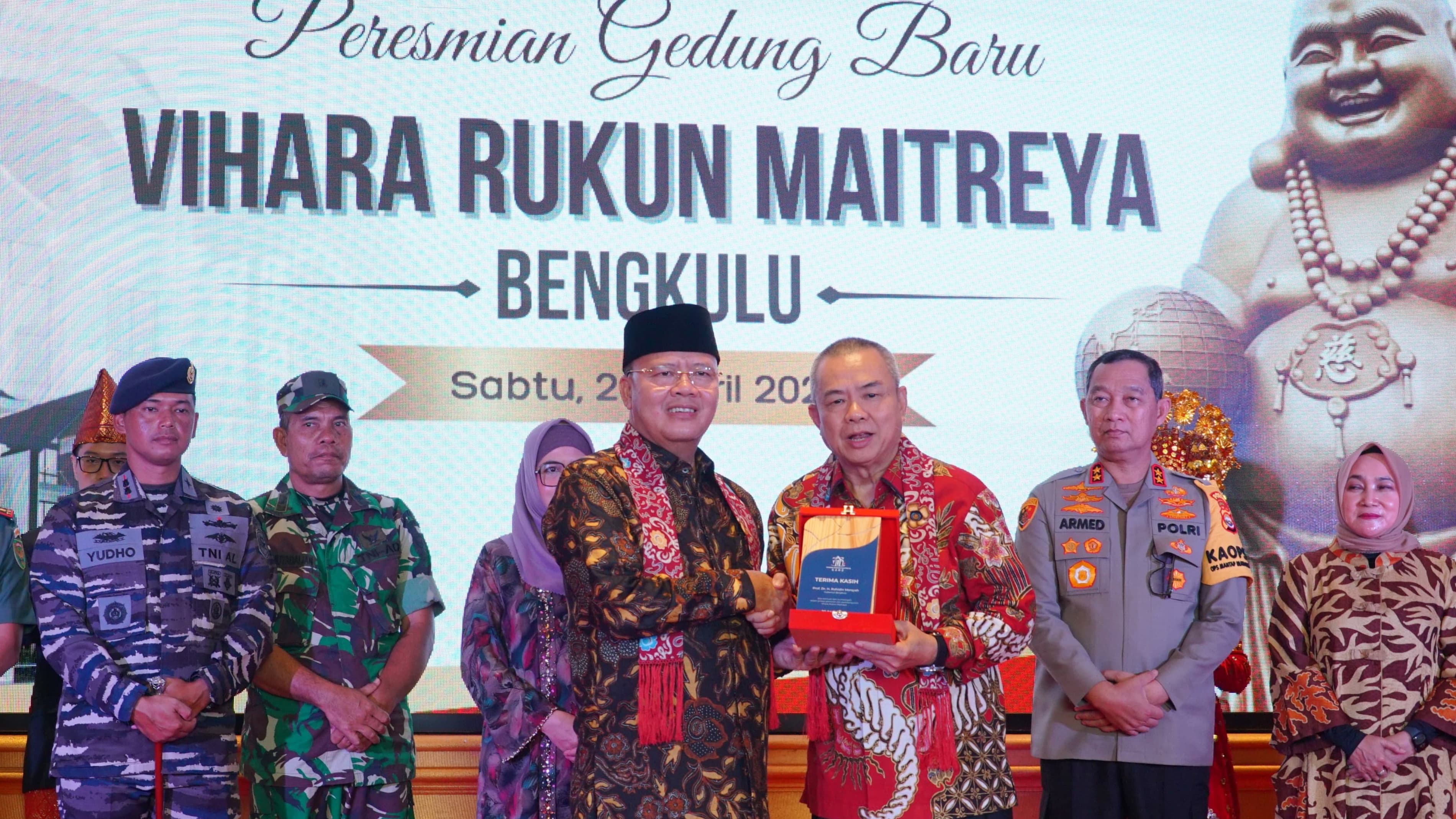 Gubernur Rohidin meresmikan Gedung Baru Vihara Rukun Maitreya Bengkulu di Jalan Hibrida Raya, Sabtu (20/04)/(Foto:Rilis MC)