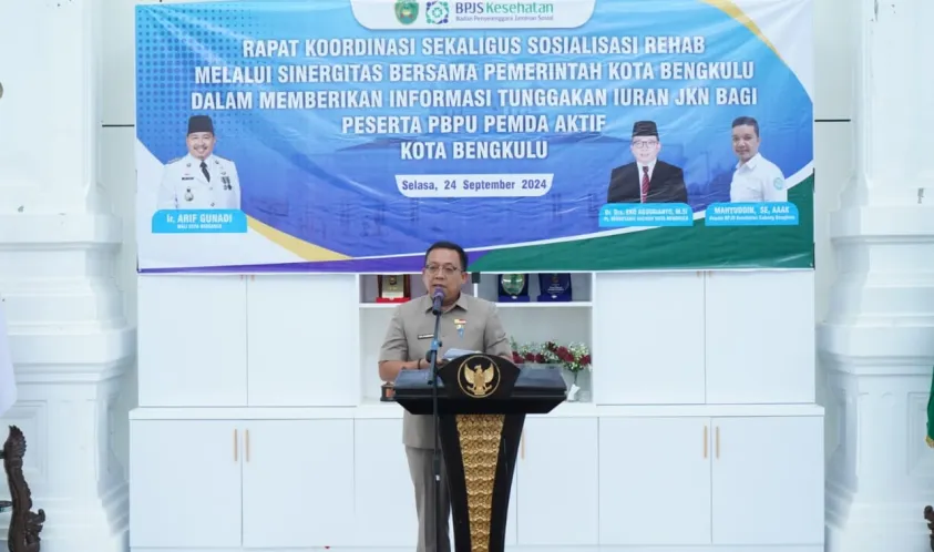 Alankanews.com,Bengkulu-- Pj Sekda Kota Bengkulu Eko Agusrianto membuka Rapat koordinasi sekaligus sosialisasi Rencana Pembayaran Bertahap (Rehab) melalui sinergitas bersama Pemerintah Kota Bengkulu dalam memberikan informasi tunggakan iuran JKN bagi peserta PBPU Pemda aktif Kota Bengkulu. Selasa (24/09/2024) di Balai Kota Merah Putih.