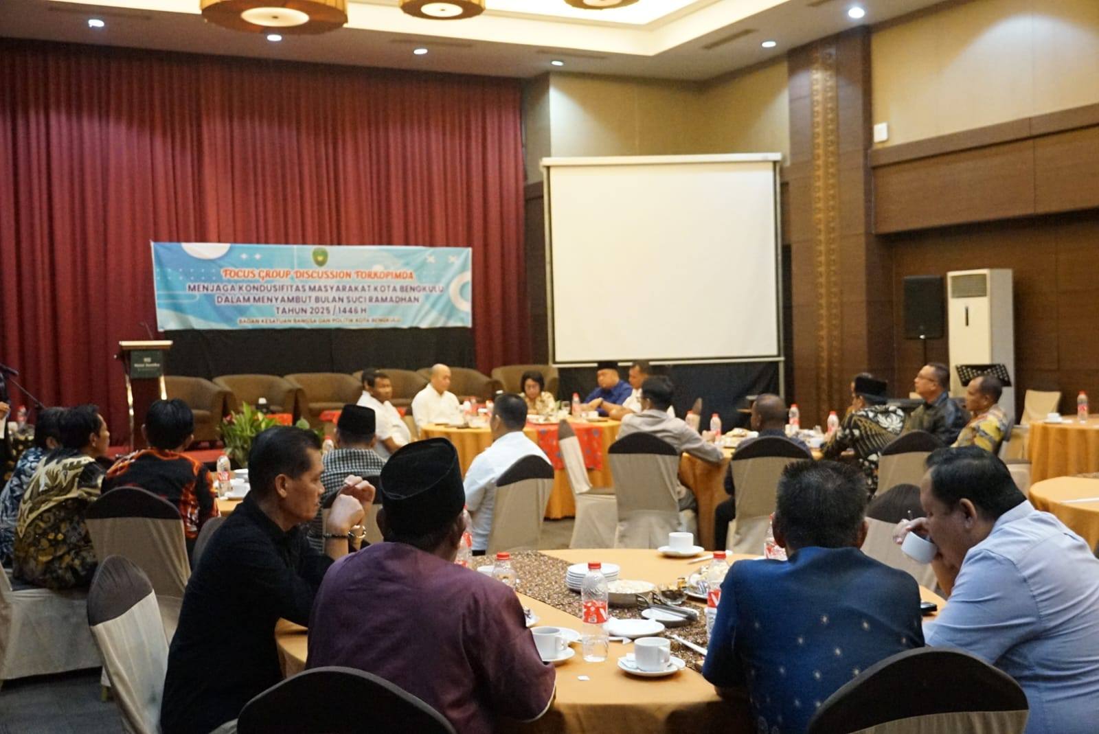 Tema FGD kali ini adalah “Menjaga Kondusifitas Masyarakat Kota Bengkulu dalam Menyambut Bulan Suci Ramadhan tahun 2025/1446 Hijriyah”. Arif berharap agar seluruh masyarakat Kota Bengkulu dapat menjaga suasana yang aman dan damai dalam menyambut bulan suci Ramadhan.