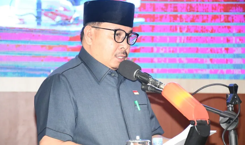 Penjabat (Pj) Walikota Bengkulu Arif Gunadi memberikan jawaban terhadap pandangan umum fraksi - fraksi di ruang Ratu Agung, kantor DPRD, senin (18/11/2024).