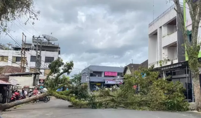 Ia menjelaskan peristiwa ini bermula saat sebuah pohon yang sudah lapuk di pinggir jalan tumbang dan menimpa sebuah tiang listrik sekitar pukul 13.00 WIB. Tiang listrik ini kemudian jatuh ke tengah jalan, dan menghambat arus lalu lintas dari dua arah.
