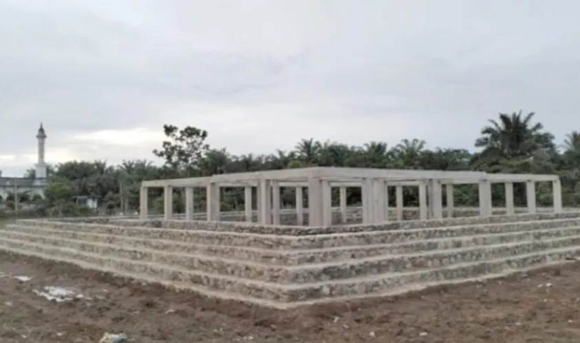 Berdasarkan dari pantauan di lapangan terlihat pada salah satu tangga ada kejanggalan yang notabenenya pada bagian bawah ditimbun dengan tanah kuning dan batu, saat itu pembangunan tengah dikerjakan tukang dari CV Pansapan Jaya.