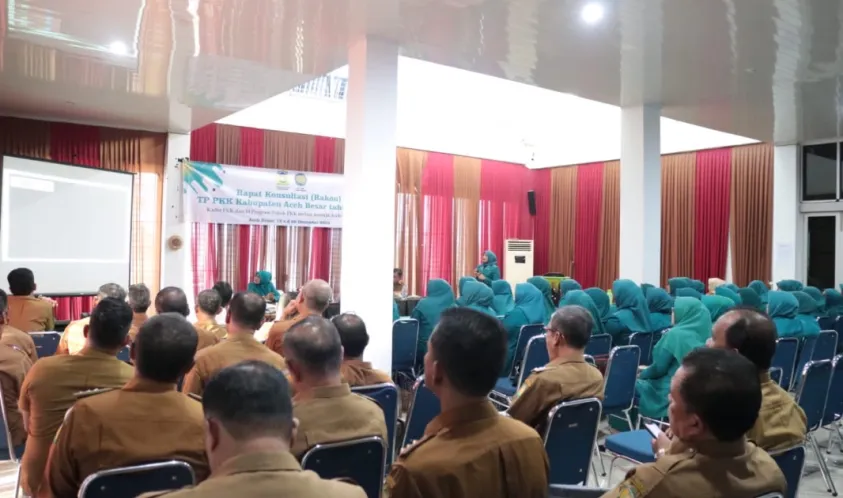 Alankanews.com, Aceh-- Pj Bupati Muhammad Iswanto SSTP MM selaku Pembina membuka secara resmi Rapat Konsultasi (Rakon) TP-PKK Kabupaten Aceh Besar tahun 2023 dengan tema " Kader PKK dan 10 Program pokok melaju menuju Aceh Besar maju" yang berlangsung di Gedung Dekranasda Aceh Besar, Gampong Gani, Kecamatan Ingin Jaya, Selasa (19/12/) Kemarin.
