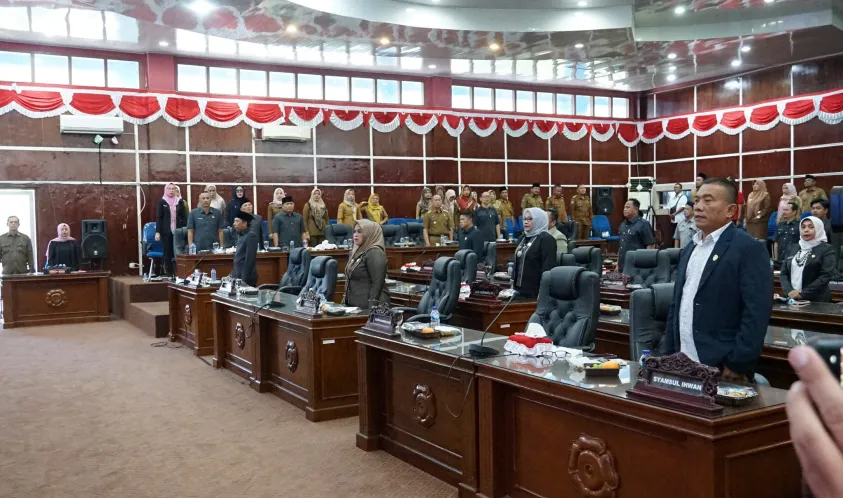 Rapat paripurna tersebut dipimpin langsung oleh Ketua DPRD Kota Bengkulu, Herimanto, didampingi oleh Wakil Ketua I, Rahmat Widodo, Wakil Ketua II, Riduan dan Pj Sekda Eko Agusrianto, di Ruang Rapat Ratu Agung DPRD kota Bengkulu, Selasa (22/10/2024).