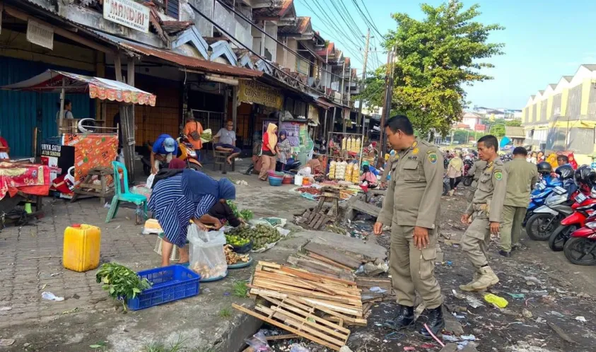 Petugas Satpol PP Kota Bengkulu masih melakukan patroli di sekitar pasar Minggu pasca penertiban, Kamis (04/07)/(Foto:Aisyah)