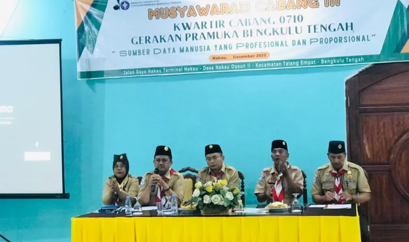 Ketua Kwartir Cabang Gerakan Pramuka Bengkulu Tengah, Nurmansyah, S.E menyampaikan sesuai intruksi hari ini pihaknya telah melaksanakan musyawarah cabang tahun 2023. Selain menyampaikan laporan pertanggung jawaban, kita juga memilih dan terpilihnya ketua kwarcab Kabupaten benteng periode 2024-2028 mendatang.