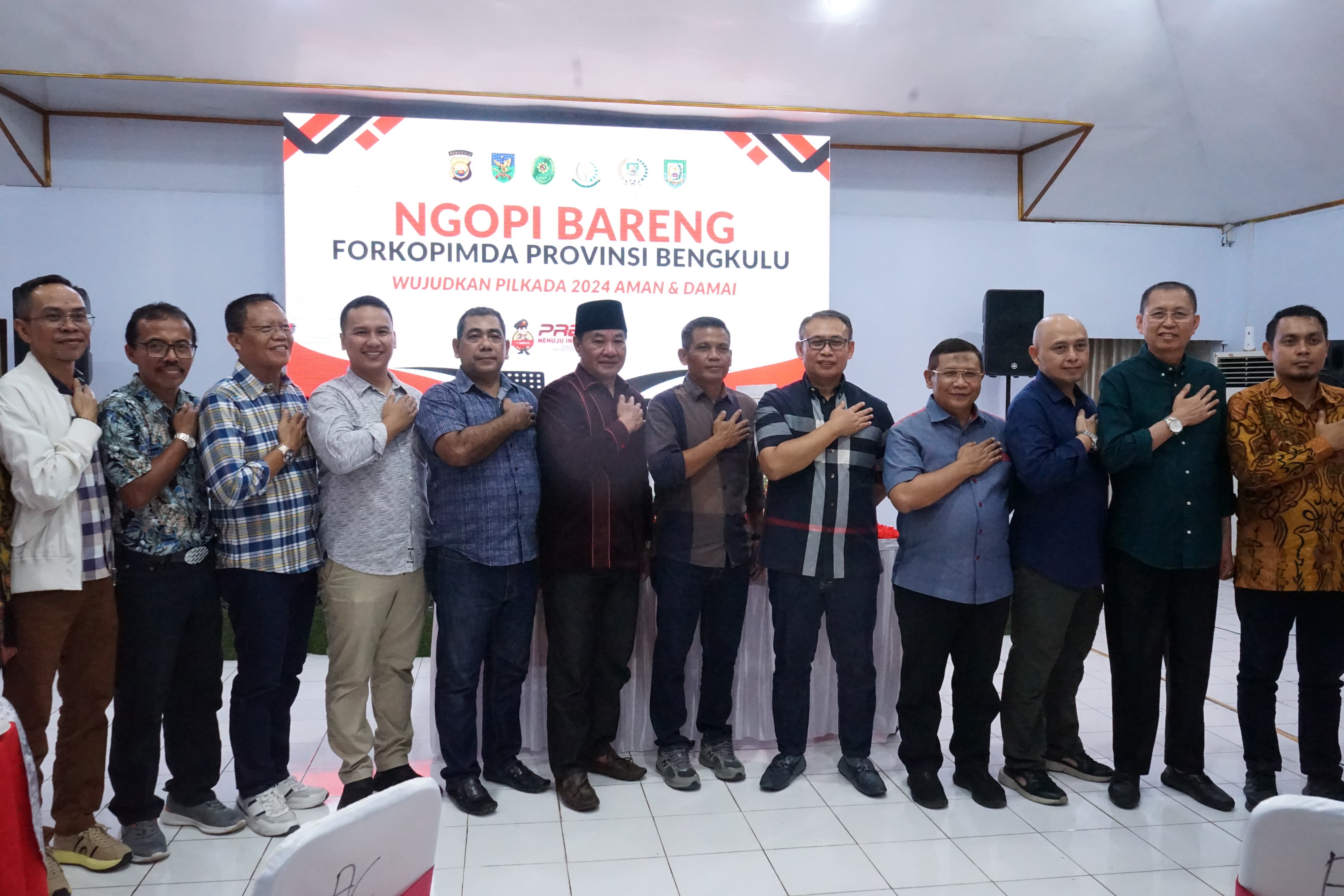 Alankanews.com,Bengkulu-- Dalam rangka menyukseskan Pilkada 2024 yang aman dan damai, Polda Bengkulu menggelar acara "Ngopi Bareng Forkopimda Provinsi Bengkulu Wujudkan Pilkada 2024 Aman & Damai" di aula rumah dinas Kapolda Bengkulu, Jumat (04/10/2024) malam.