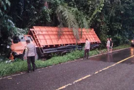 Alankanews.com, Seluma-- Sebuah kecelakaan tunggal melibatkan truk fuso terjadi di ruas jalan linta
