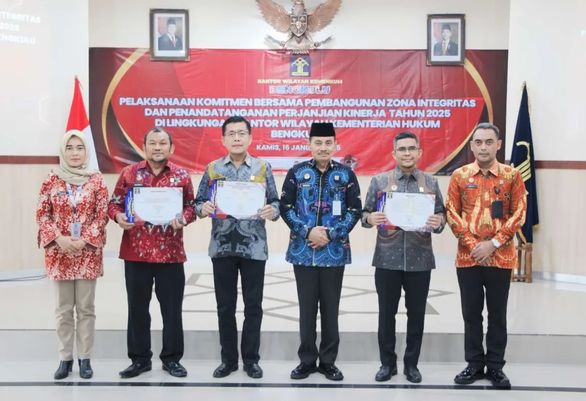 Kantor Wilayah Kementerian Hukum Bengkulu Pencanangkan Zona Integritas dan Penandatanganan Perjanjian Kinerja Tahun 2025