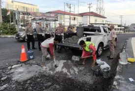 Lubang di Jalan Jati Menimbulkan Keresahan, Ditlantas Polda Bengkulu Lakukan Penambalan