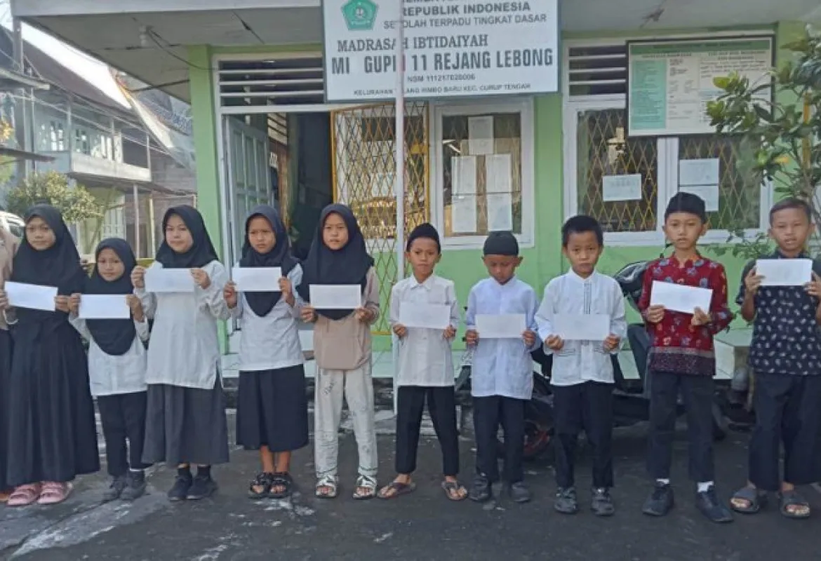 Alankanews.com,Bengkulu-- MI GUPPI 11 Rejang Lebong menyalurkan zakat kepada 10 siswa yang berhak me
