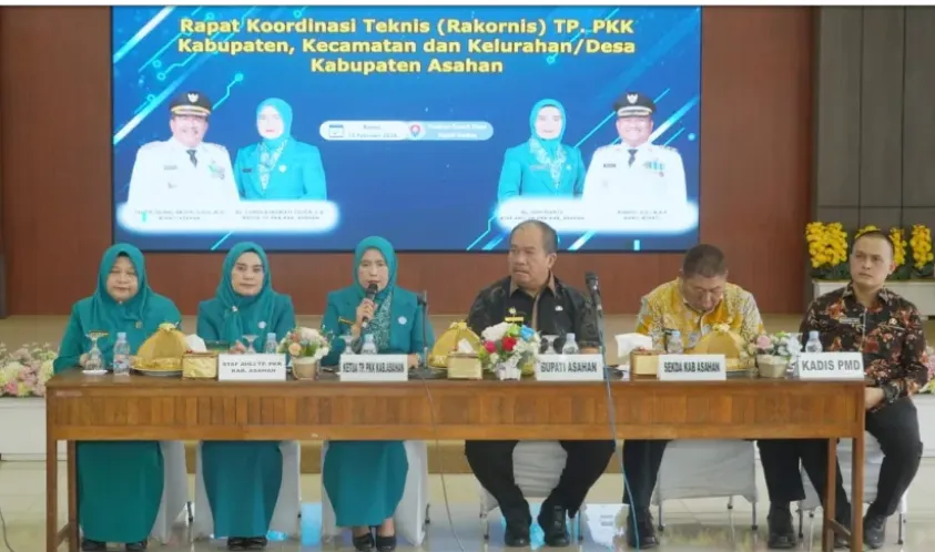 Alankanews.com, Asahan -- Tim Penggerak (TP) PKK Kabupaten Asahan menggelar Rapat Koordinasi Teknis (Rakornis) pada hari ini yang diikuti oleh TP PKK tingkat kabupaten, kecamatan, kelurahan, dan desa. Kegiatan ini membahas secara khusus persiapan menghadapi sembilan lomba yang akan diikuti dalam waktu dekat. Rakornis tersebut dihadiri langsung oleh Bupati Asahan, Sekretaris Daerah Kabupaten Asahan, Organisasi Perangkat Daerah (OPD), para Camat se-Kabupaten Asahan, serta Ketua dan pengurus TP PKK Kabupaten, Kecamatan, Desa, dan Kelurahan yang bertempat di pendopo rumah dinas Bupati Asahan Kamis (12/02/2026). Kegiatan ini menjadi ajang konsolidasi dan penyamaan persepsi guna memaksimalkan kesiapan di setiap jenjang kepengurusan. Selain membahas teknis pelaksanaan lomba, rapat juga menekankan pentingnya sinergi antara TP PKK dan OPD penanggung jawab di masing-masing bidang.