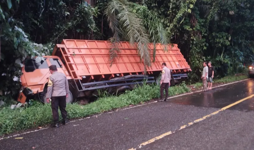 Beruntung, saat itu tidak ada kendaraan lain yang melintas dari arah berlawanan, sehingga sopir bisa menghindari tabrakan lebih parah. Truk akhirnya terperosok ke dalam siring, namun tidak ada korban jiwa dalam peristiwa tersebut.