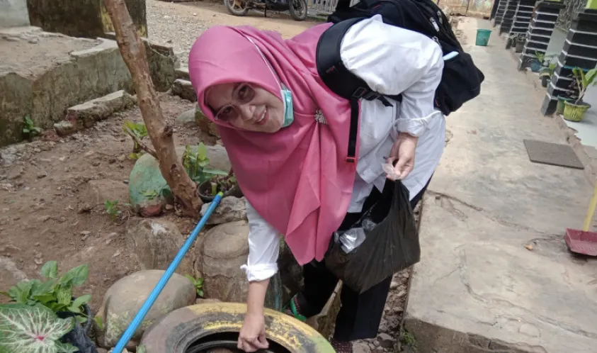 “Alhamdulillah kami diberikan bubuk abate nanti melalui tim UKS kami akan kami aplikasikan pada genangan air bekas wudhu siswa dan di bawah-bawah keran air," ucap Evi.