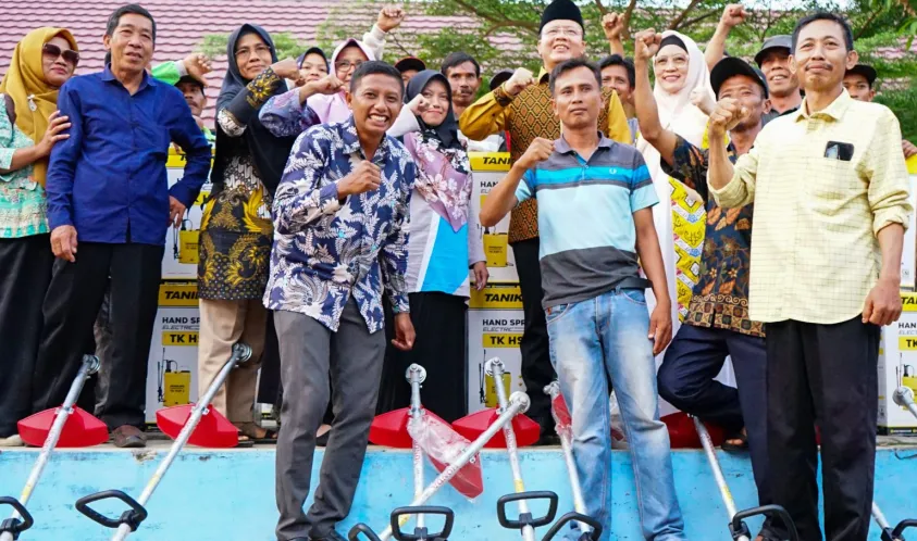 Supriyono (45) salah seorang perwakilan kelompok tani mengaku bahagia menerima bantuan Alsintan dari gubernur. Menurutnya alat pertanian ini sangat membantu dalam mempercepat pengolahan lahan pertanian kelompoknya.