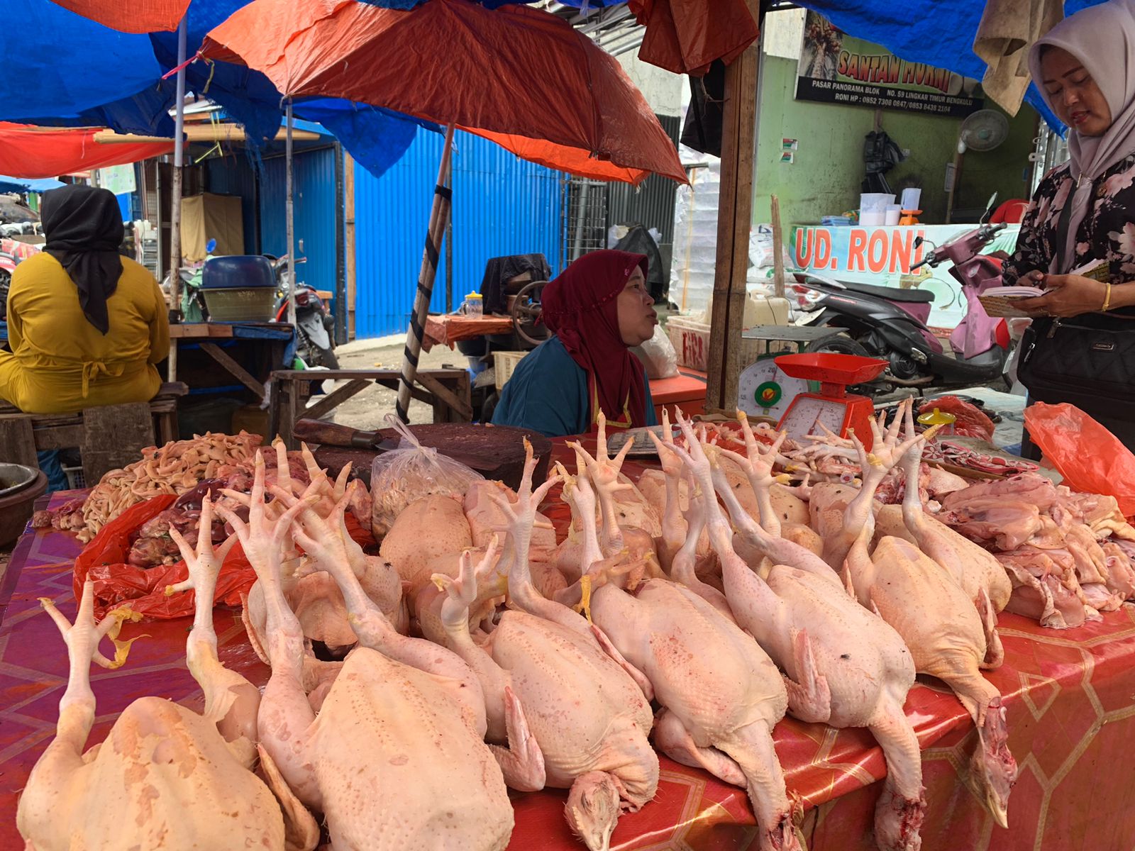 "Untuk harga daging ayam hari ini meningkat dari minggu lalu, kalo minggu lalu sekilonya Rp25.000 dan hari terakhir 2023 ini menginjak harga Rp35.000, kenaikan ini mengikuti suasana untuk menyambut tahun baru 2024," ujarnya.