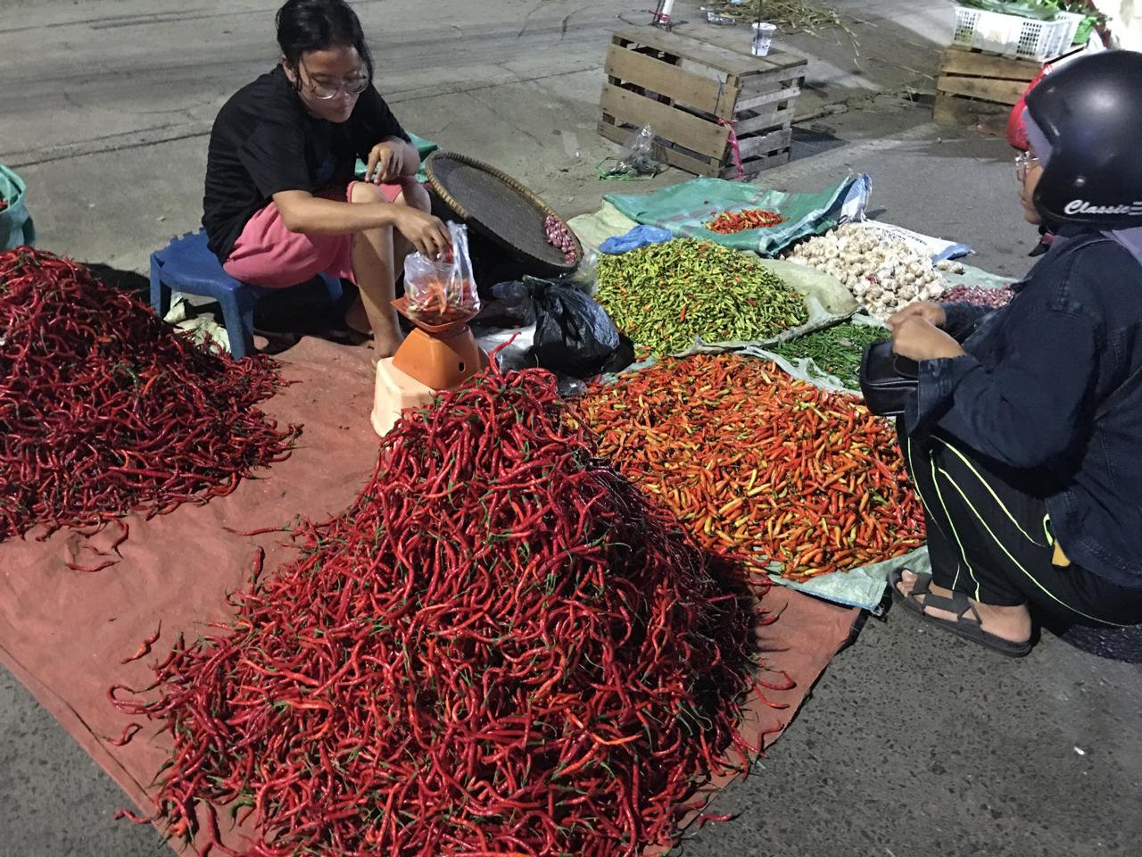 Salah satu pedagang cabai merah, Sri Mulyani (47) mengatakan, harga cabai merah saat ini masih seperti biasanya, adanya panen raya cabai di beberapa wilayah, yang membuat pasokan melimpah dan harganya masih stabil atau bahkan turun.