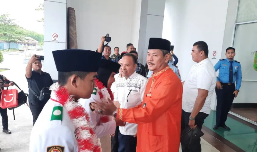 Pemerintah Provinsi (Pemprov) Riau diwakili Kepala Badan (Kaban) Kesatuan Bangsa dan Politik (Kesbangpol) Provinsi Riau, Jenri Salmon Ginting menyambut kepulangan dua anggota Paskibraka Nasional tahun 2024 asal Provinsi Riau.