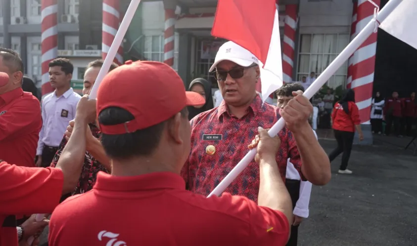 "Pembagian Bendera Merah Putih yang dibagikan pada hari ini bukan sekedar kain saja, tapi simbol perjuangan, pengorbanan dan cinta tanah air yang diwariskan oleh para pahlawan kita. Kita tegaskan bersama untuk seluruh generasi penerus bangsa bahwa kalian merupakan penerus bangsa, oleh karena itu jadikanlah semangat kemerdekaan ini sebagai inspirasi untuk terus berkarya, berinovasi, dan memberikan yang terbaik bagi bangsa serta negara," jelas Heri.